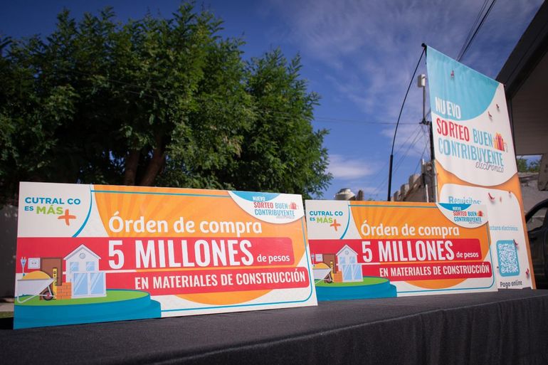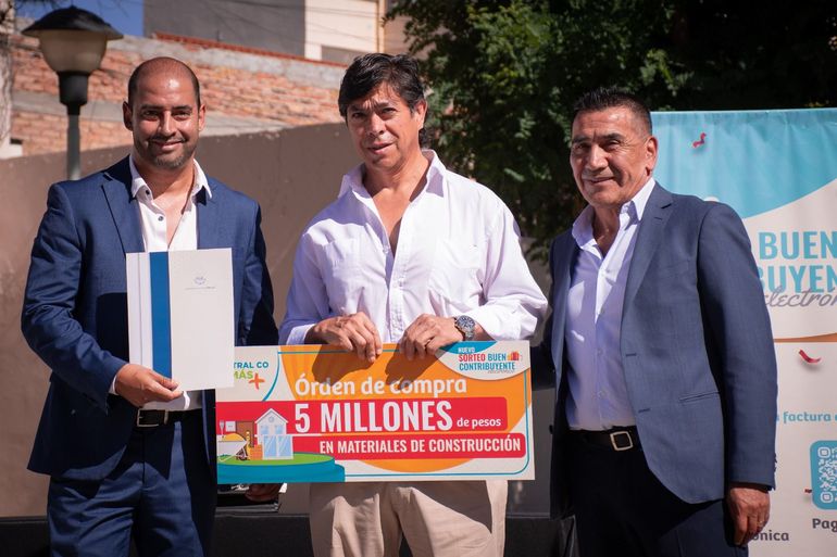 En un acto realizado este lunes, se llevó a cabo la entrega de premios del sorteo al Buen Contribuyente Electrónico, una iniciativa destinada a reconocer a los vecinos que, con su aporte, permiten el sostenimiento de los servicios municipales en Cutral Co. Se entregaron dos órdenes de compra de materiales para la construcción por cinco millones de pesos cada una, y una camioneta Toyota Hilux doble cabina cero kilómetros.