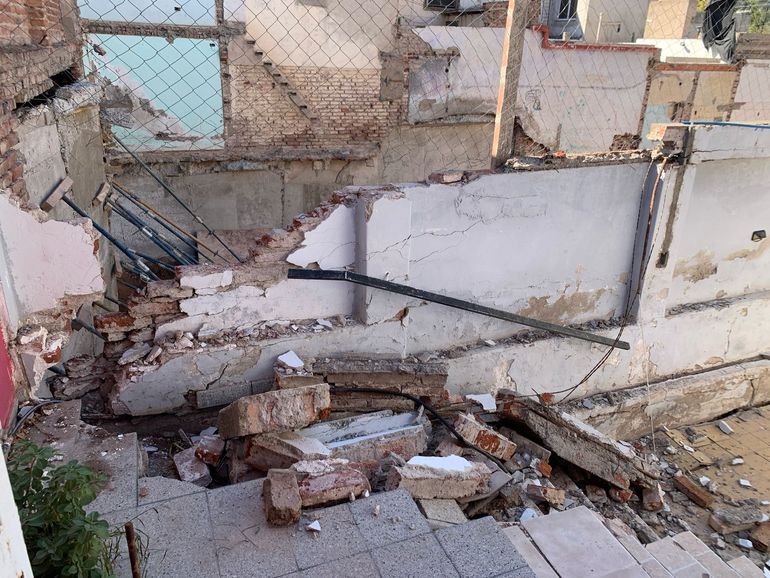Además, denunció que "aparecieron personas que se robaron los puntales que están sosteniendo las paredes", "también mandaron a una persona que vaciar un cargador acá para que yo la corte de escribir, porque yo escribo en las paredes para advertir de su accionar".