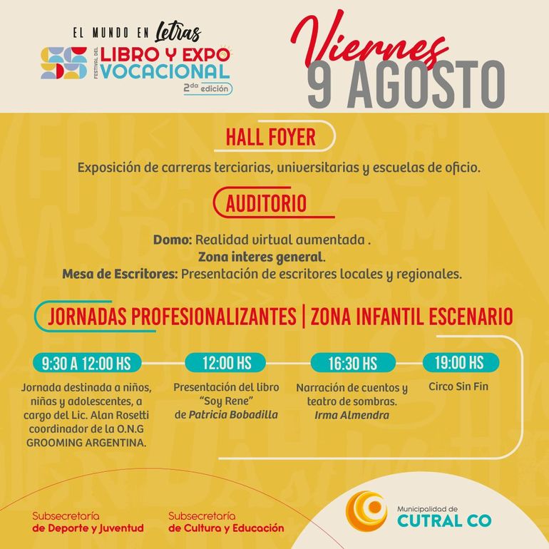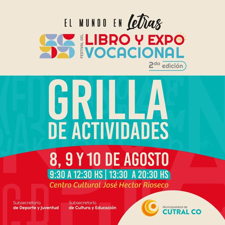 Este jueves se realizó una conferencia de prensa en la que se presentó formalmente la Segunda Edición del Mundo en Letras "Festival del Libro y Expo Vocacional", que se llevará a cabo el 8, 9 y 10 de agosto en el Centro Cultural de Cutral Co.
