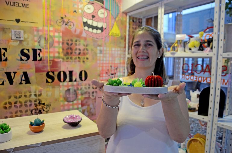 Con una extrema atención al detalle, se ocupa de fabricar cuencos de cemento y crea diseños desafiantes, como cactus, que iluminan la estancia al encenderse. "Los cactus siempre me gustaron, me gusta también su significado y lo que representan", dijo y agregó que hizo creaciones con frutos rojos y otras propuestas que se escapan de la oferta estándar de velas decorativas.