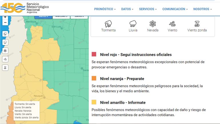 El SMN anticipó que regirá una alerta amarilla en toda la provincia por viento mientras que para el extremo sur emitió una alerta naranja por nevadas.