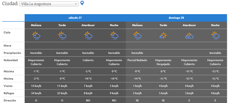 Hacia el interior de la provincia, el frío será más intenso, tanto que las mínimas extremas pueden rondar en torno a los -15 °C. Así lo indica la AIC en su pronóstico para Villa La Angostura, la localidad que sentirá todo el rigor del invierno este fin de semana. El sábado, con -14 grados por la mañana y el domingo, con -15 grados. Otras localidades como Villa Moquehue y Caviahue también registrarán temperaturas mínimas en torno a los -13 grados. San Martín y Junín de los Andes, -11 °C.
