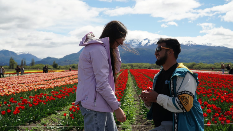 Con otras relaciones anteriores, Gabriel nunca había sentido una conexión tan fuerte, que no se explica. Enseguida, comenzó a planear el momento perfecto para pedirle casamiento. Su amiga y cómplice absoluta lo ayudó a medir el anillo y a organizar los detalles. Recordó entonces que Micaela tenía muchas ganas de conocer la plantación de tulipanes que causa furor y es un atractivo turístico muy importante en Trevelin, Chubut.