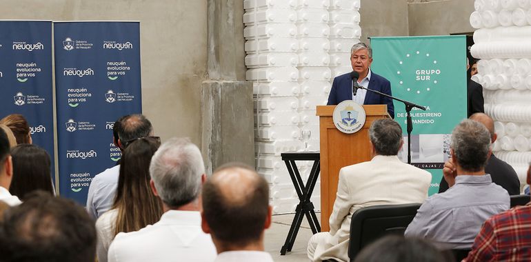 El acto se desarrolló en las instalaciones de la empresa Grupo Sur, en Parque Industrial Neuquén Este, una empresa familiar dedicada a la fabricación de productos de Poliestireno Expandido (Telgopor) para el sector de la construcción y de diversos envases, como potes para helados y cajas para frutas finas.