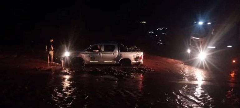 Sin embargo, los conductores del camión y la camioneta decidieron avanzar de todos modos. Según relataron testigos, continuaron la marcha circulando por la banquina, que se encontraba totalmente socavada por el agua, hasta quedar atascados.
