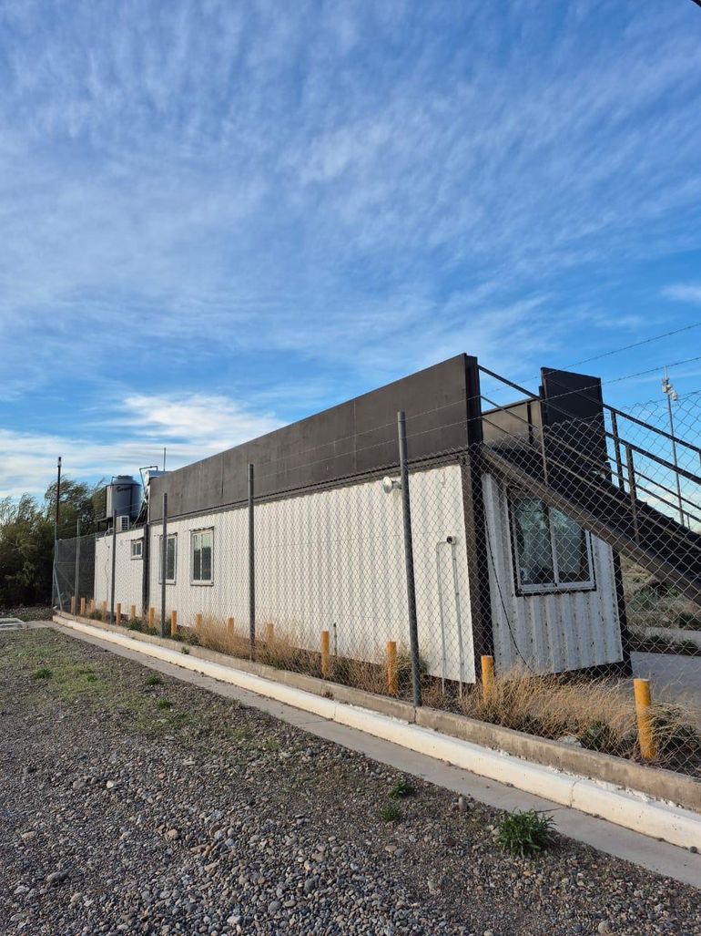 Uno de los contenedores es de 12 metros, con planta baja y terraza, aislado en sus lados verticales y horizontales, con terminación interior de muro y cielorraso de durlock con pisos cerámico, el exterior en terminación chapa, pintada.