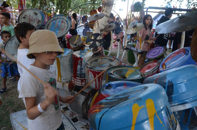 En otro espacio del predio se encuentra una zona de plaza con instrumentos musicales para que los niños puedan crear su propia música.