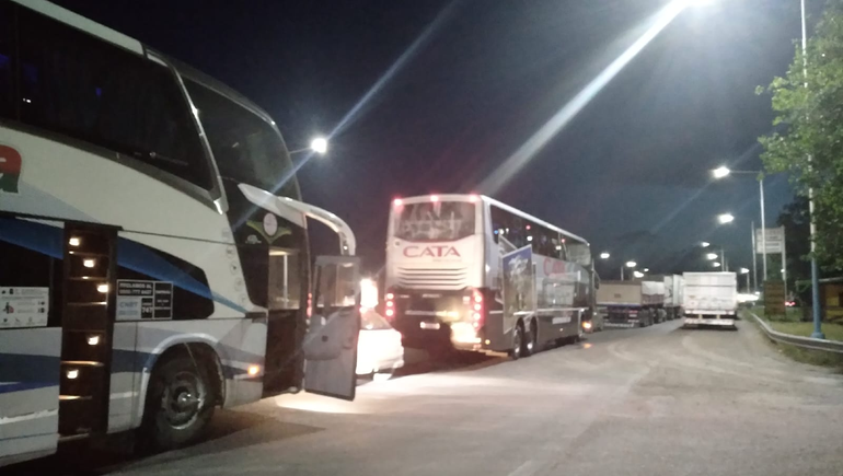 Debido a las importantes demoras, los choferes autorizaron a los pasajeros a descender de los colectivos de larga distancia, aprovechando una estación de servicio que hay en el lugar y que rápidamente se colmó de clientes en busca de refrescos y comida.