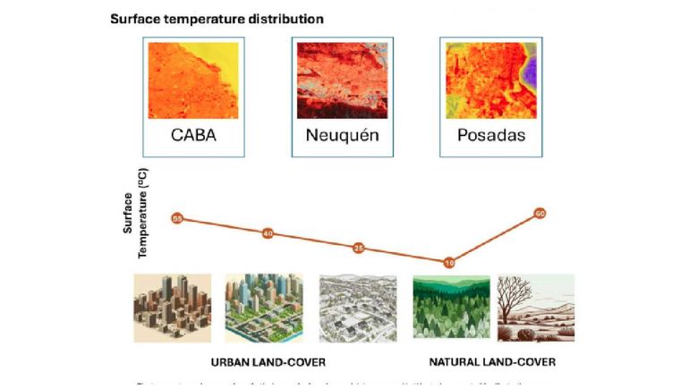 Las imágenes satelitales que midieron estos datos no reflejan la temperatura del aire, sino la que retienen los materiales del suelo y las construcciones, lo que marca una diferencia crucial para entender cómo se siente realmente el calor en la ciudad. Es decir, no se toma en cuenta la temperatura oficial del Servicio Meteorológico Nacional (SMN) sino lo que irradian los materiales de la ciudad.