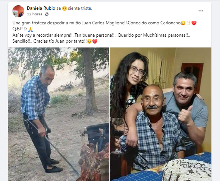 En tanto que la víctima fatal, identificada como Juan Carlos Maglione, perdió la vida en el acto, producto de los golpes. "Carloncho", como lo conocían, tenía 67 años y era muy querido por los vecinos de Ramos Mexía.