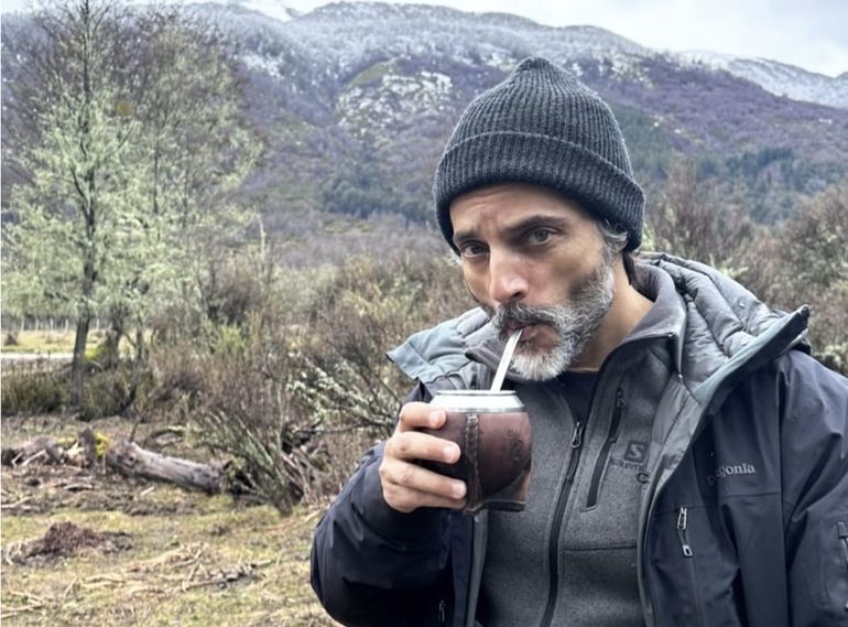 En otras publicaciones, el actor compartió imágenes de los paisajes de la zona y de él tomando mate en un mallín.