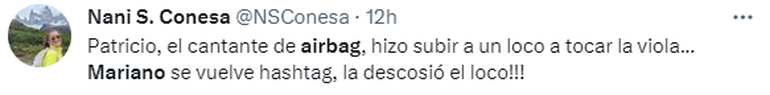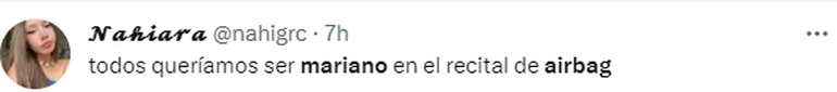 Tras el show de Airbag, muchos fans se volcaron a las redes para congelar ese momento y expresar la locura que habían vivido. Todos, en ese momento, quisieron ser Mariano, y las redes se llenaron de mensajes alusivos.