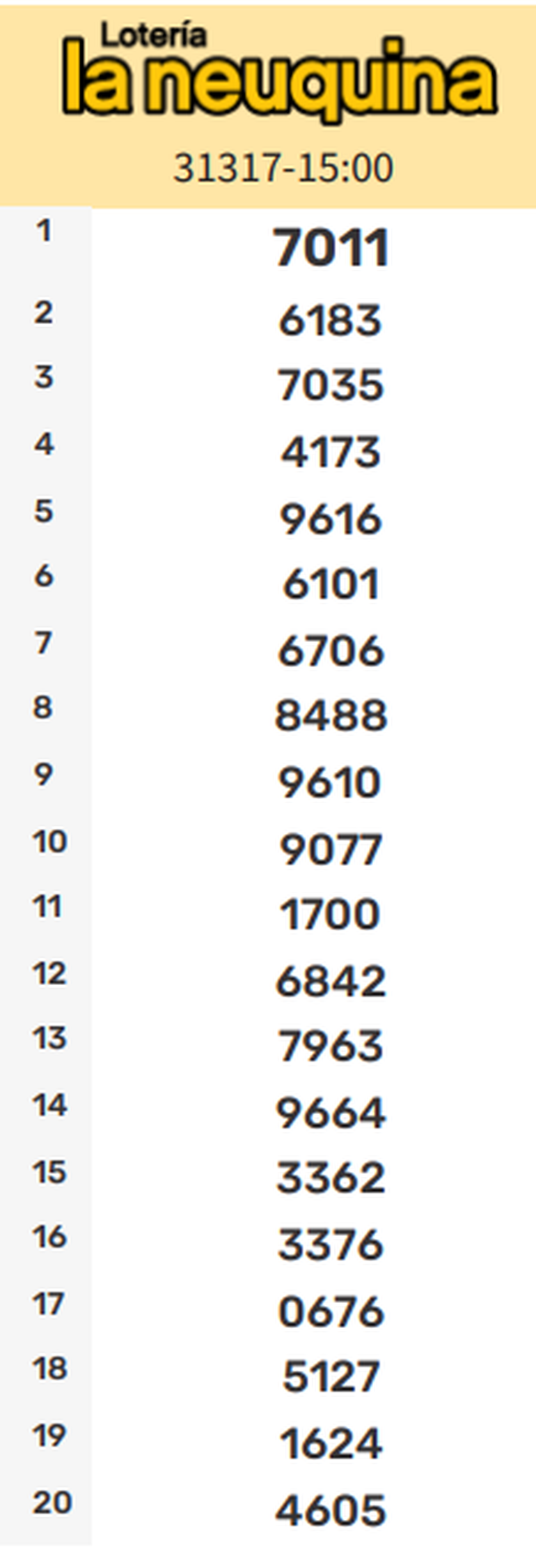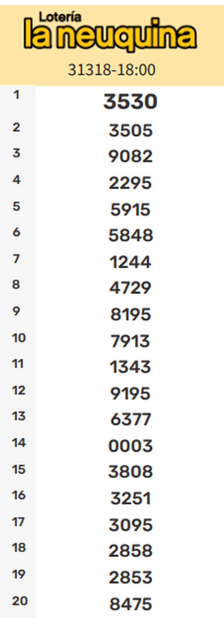 Todos los números ganadores de la Quiniela La Neuquina de este lunes. Resultados de la Primera, Matutina, Vespertina, Nocturna y Sorteo Extraordinario actualizados en vivo.