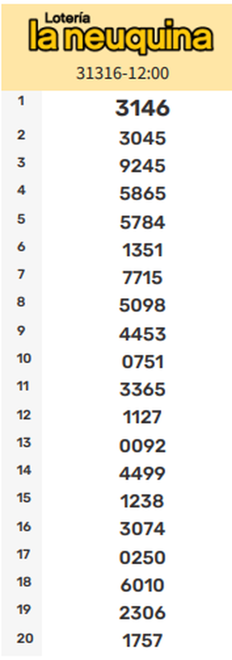 Cerca del mediodía, el sorteo de El Primero arrojó como principal ganador al número 3146 en el tope del extracto.