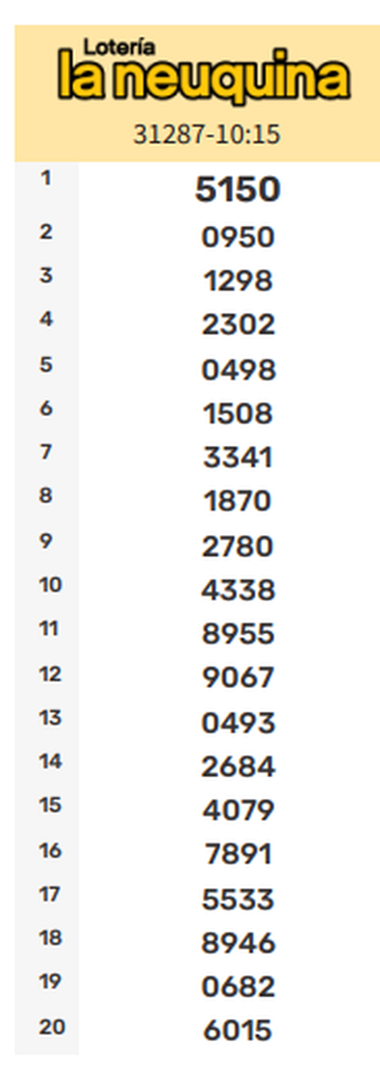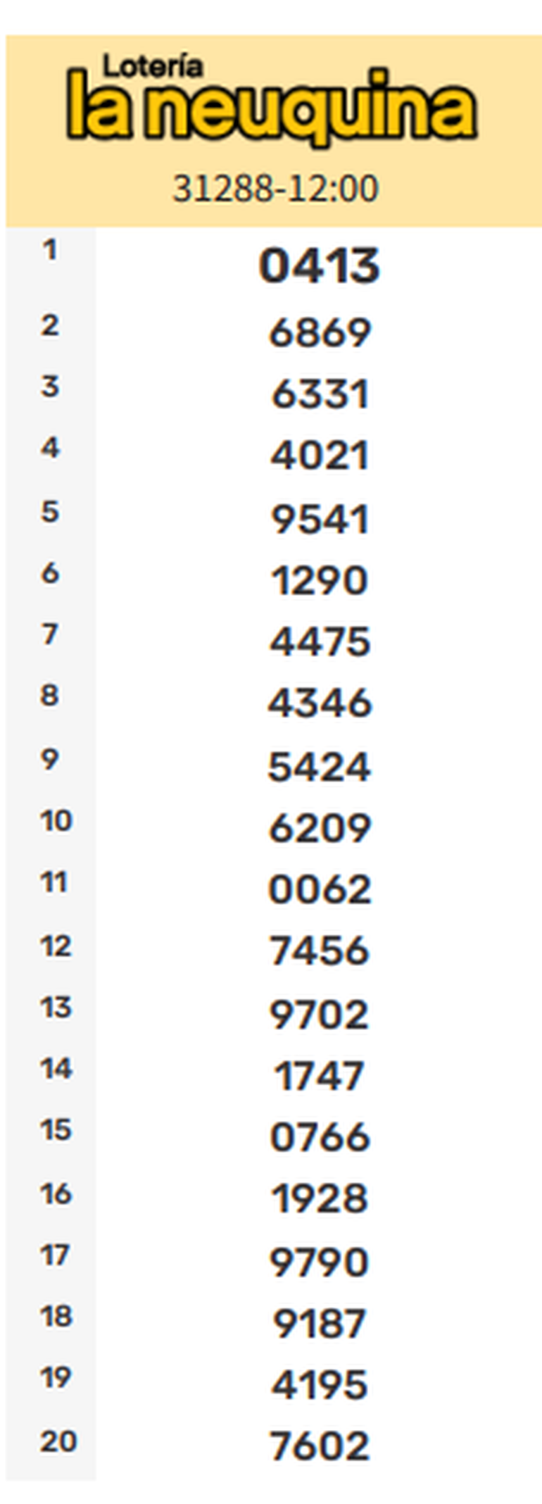 Todos los números ganadores de la Quiniela La Neuquina de este lunes. Resultados de la Primera, Matutina, Vespertina, Nocturna y Sorteo Extraordinario actualizados en vivo.