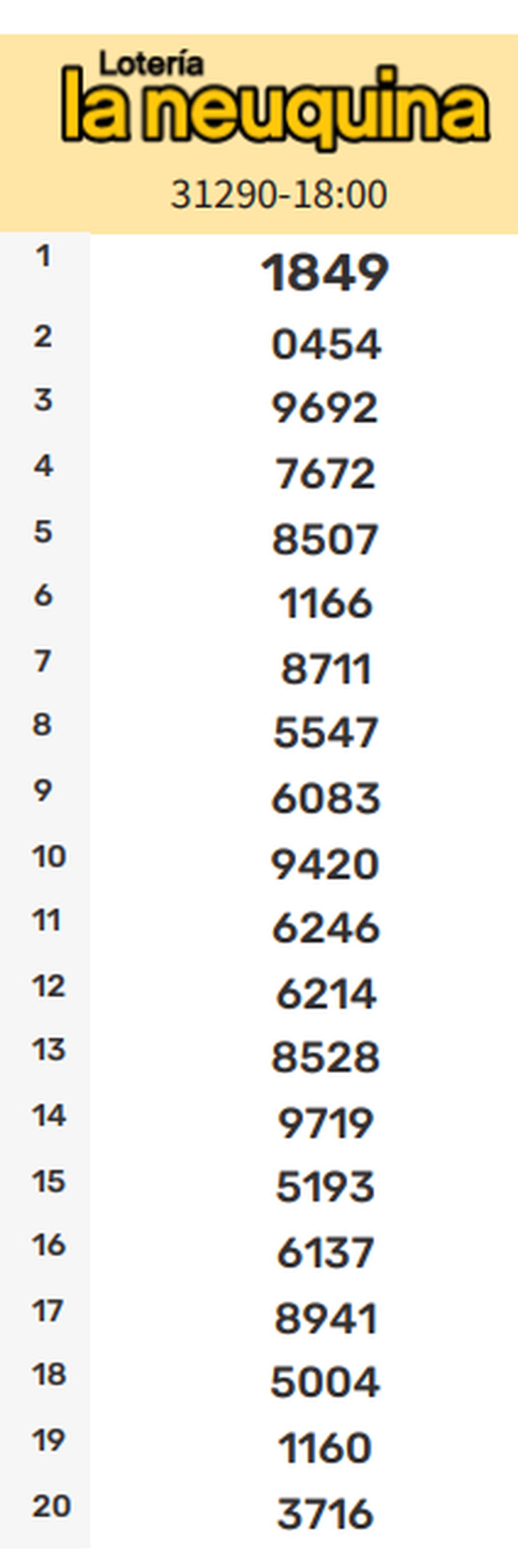 Sorteo Vespertino de La Neuquina