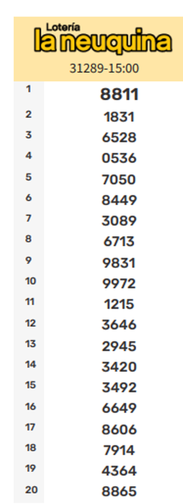 En la edición Matutina, el primer premio correspondió al número 8811, completando la grilla de la siguiente manera:
