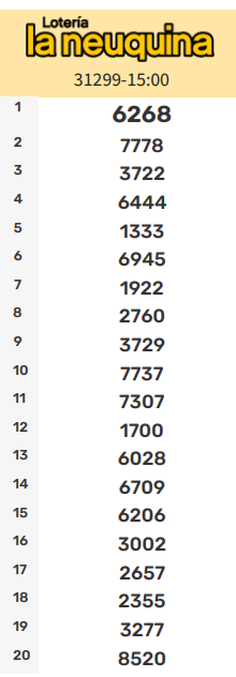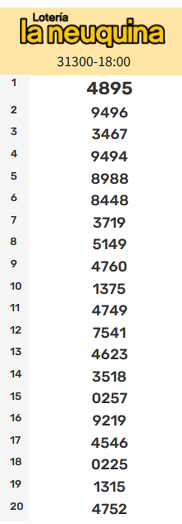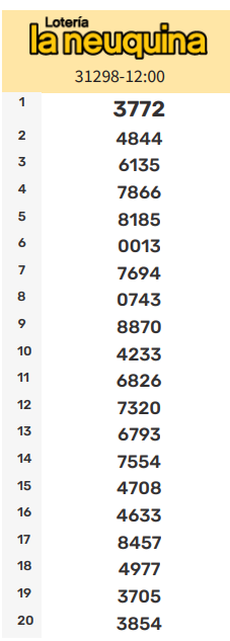 Todos los números ganadores de la Quiniela La Neuquina de este miércoles. Resultados de la Primera, Matutina, Vespertina, Nocturna y Sorteo Extraordinario actualizados en vivo.