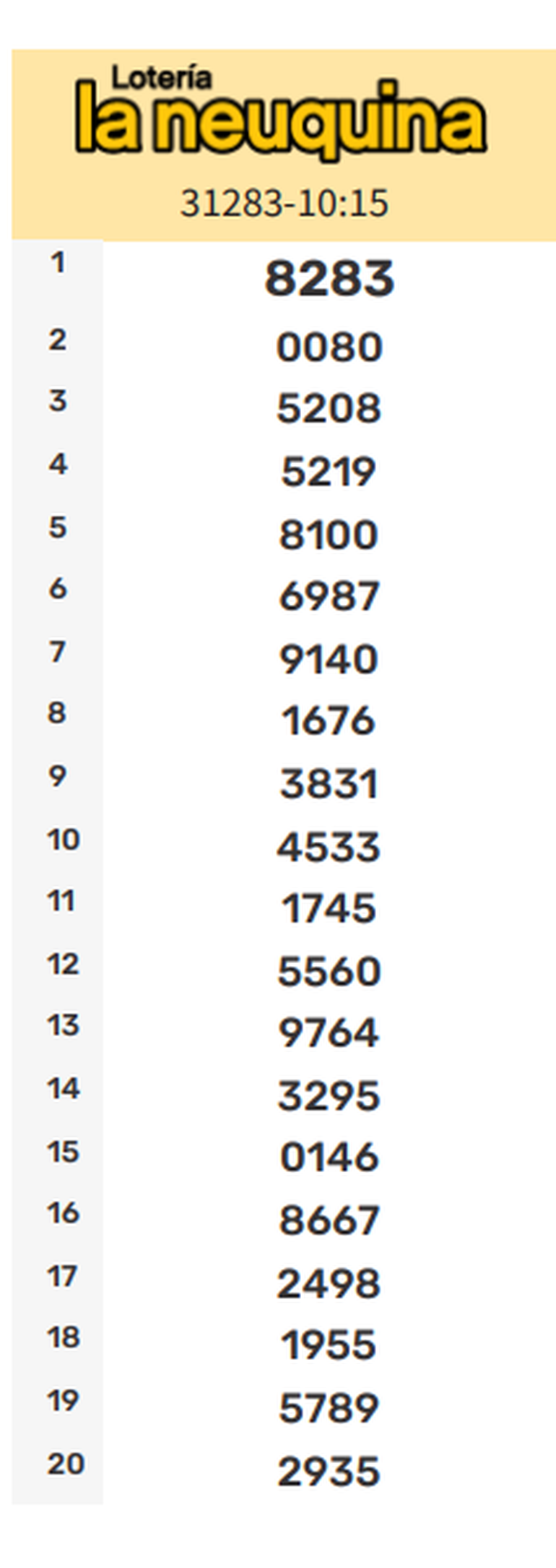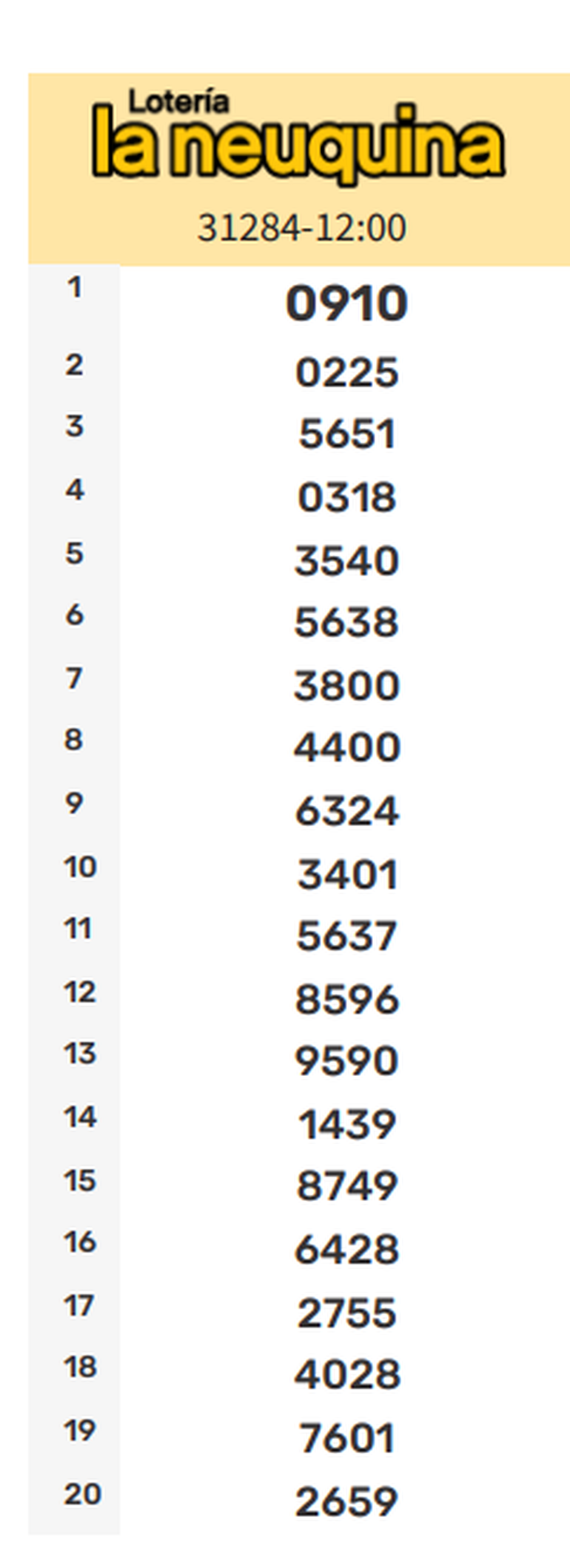 Todos los números ganadores de la Quiniela La Neuquina de este sábado. Resultados de la Primera, Matutina, Vespertina, Nocturna y Sorteo Extraordinario actualizados en vivo.