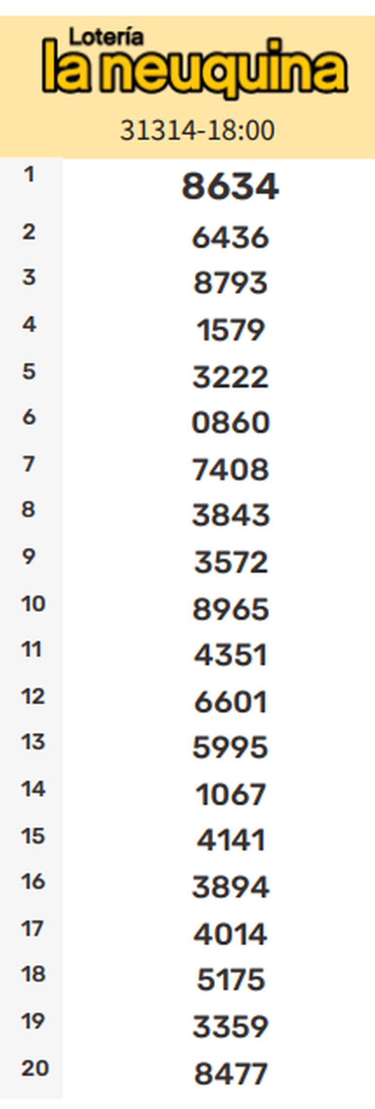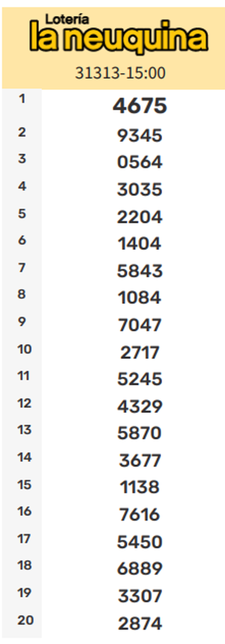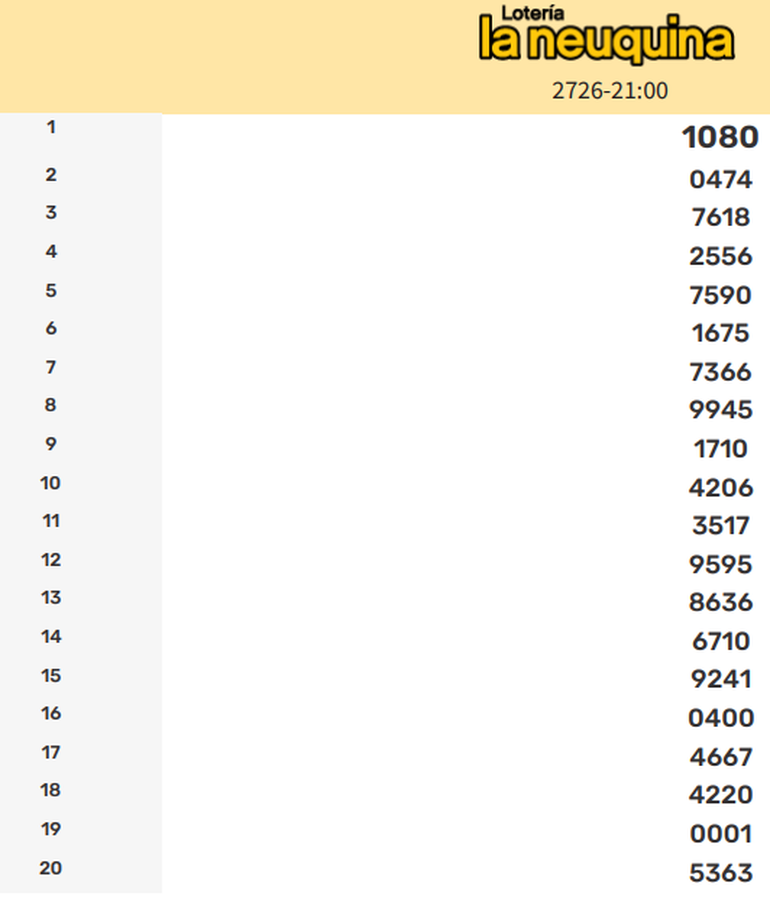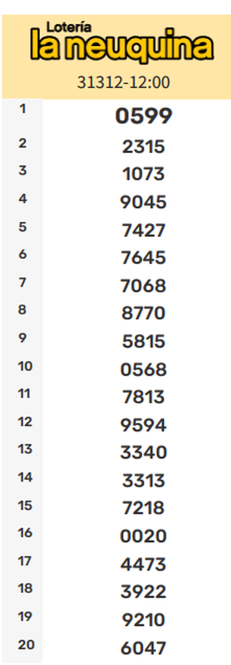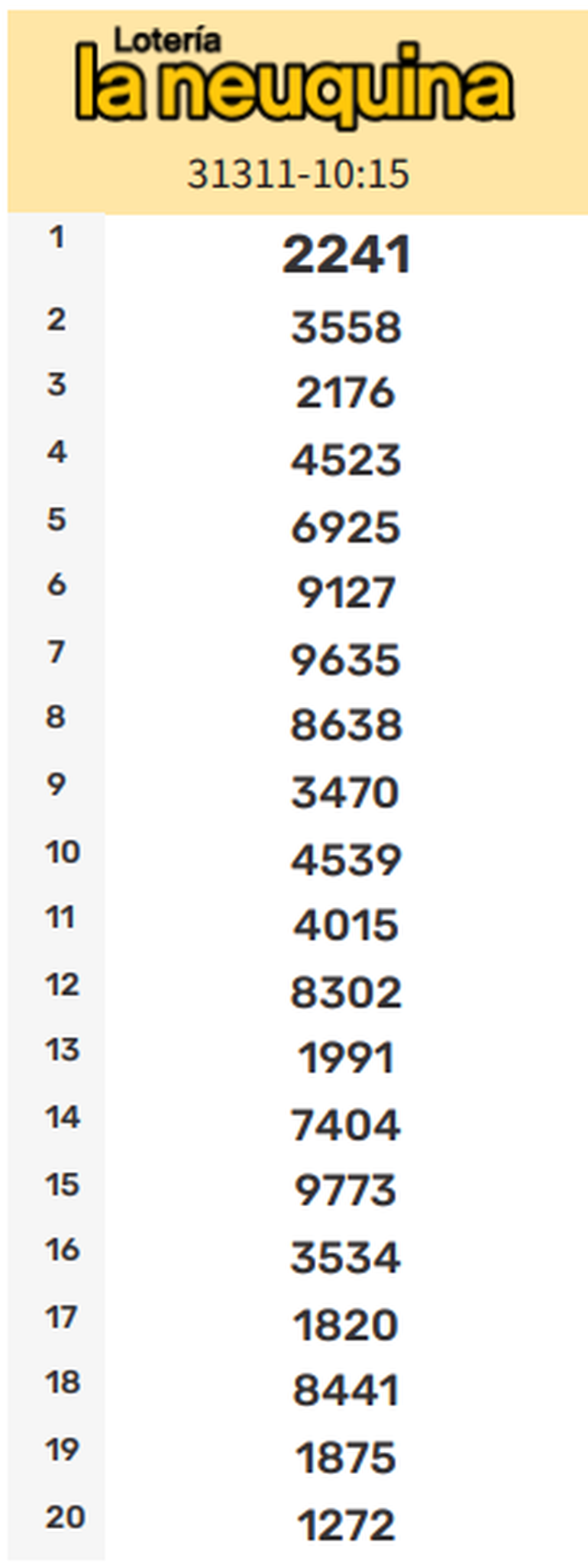 Todos los números ganadores de la Quiniela La Neuquina de este sábado. Resultados de la Primera, Matutina, Vespertina, Nocturna y Sorteo Extraordinario actualizados en vivo.