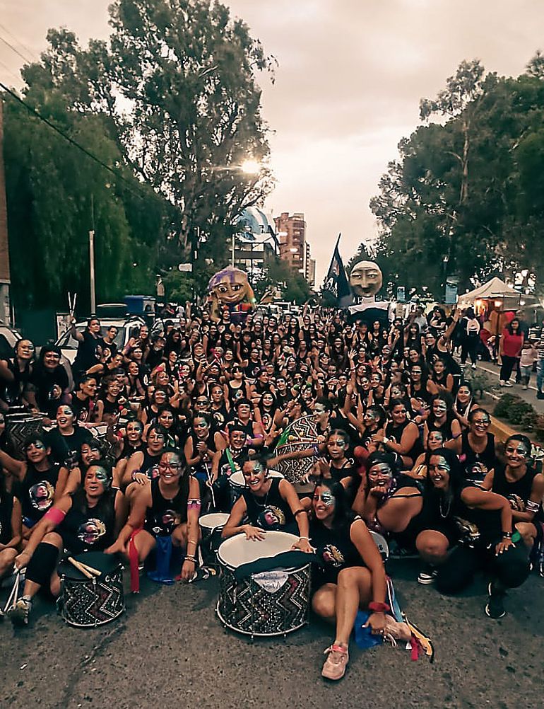 Hay marcha de Ni una menos. Están matando a las pibas y Neuquén no se queda callada. Las calles están cortadas, las banderas apostadas una tras otra frente al Monumento a San Martín. Una columna de más de 15 mil personas empieza a caminar en dirección a la ruta. En la intersección de Alberdi y Avenida Argentina aparece un grupo de mujeres con las caras pintadas. Son muchas más que cien, la mitad lleva un tambor colgando del cuerpo, las otras danzan al ritmo del redoble con una coordinación perfecta. Es imposible permanecer indiferente, no detenerse a contemplar la escena que construyen: están bailando la rabia, están convirtiendo en música el dolor.