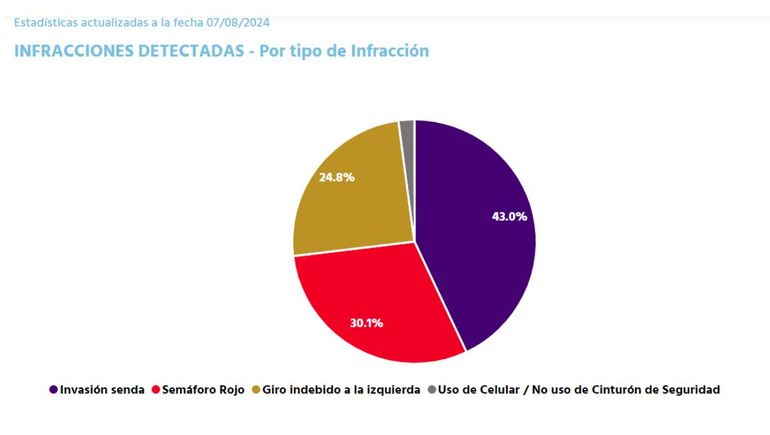 Los últimos datos publicados por el gobierno local muestran cómo se distribuyen las fotomultas según el tipo de contravención. Cruzar el semáforo en rojo es una de las infracciones más comunes y también una de las más peligrosas. Hasta ahora, representan el 30% de las maniobras no permitidas que fueron captadas por las cámaras de los semáforos, lo que representa una caída con respecto a la medición hecha a mitad de julio, cuando marcaba el 33%.
