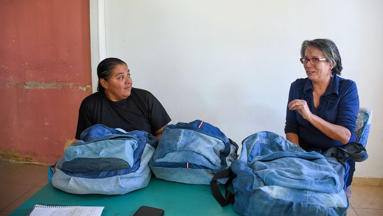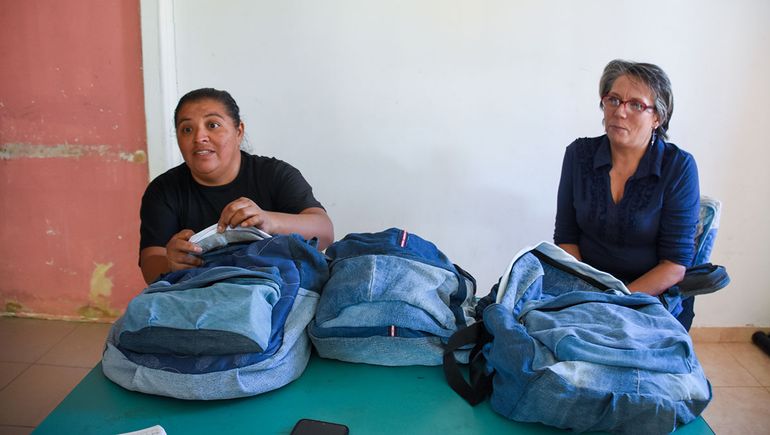 Se podría pensar que ya tuvieron suficiente con su propia vida. Otros en su lugar con mucho más para dar y en condiciones más felices no dedican ni media hora de su tiempo. Y sin embargo Mónica y Bernarda buscan la manera de ser empáticas con los demás. Ahora están haciendo mochilas con los mejores retazos de jean que ya no usa la gente.