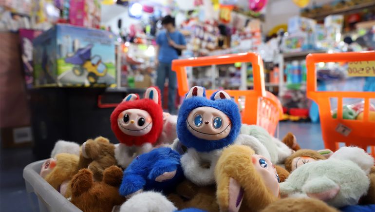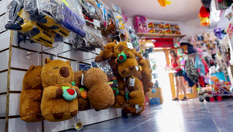 En Mayorista Bruno, la tendencia de las redes se trasladó a lo que quieren comprar los nenes: peluches y accesorios de capibaras y labubus pueden encontrarse entre $3000 y $5000.