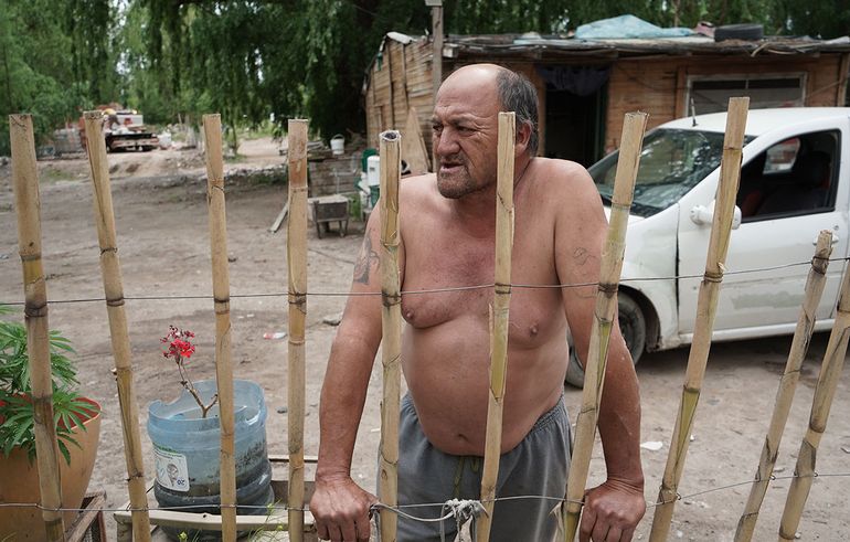 Al lado de la casa de Juan, un pavo hunde el pico entre los residuos para buscar alguna semilla perdida que le sirva de alimento y, entre los alambrados, la ropa de los vecinos se seca a la sombre de los árboles frondosos. Los troncos anchísimos de los sauces llorones muestran una base más oscura: "Hasta ahí llegó el agua", dice él y afirma que hay otros habitantes del lugar que la tienen más complicada, porque viven en una zona baja que queda siempre entre el agua empantanada.