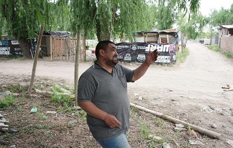 La vida dentro de Orillas del Limay resume los profundos contrastes de Neuquén. Un lavarropas oxidado se arrumba sobre una montaña de residuos indescifrables, entre la tierra mojada y troncos enormes de sauces llorones. Juan, que vive en la zona desde hace siete años, explica que antes conseguía materiales de la empresa en la que trabajaba para poder rellenar esa zona pantanosa y guarecerse de las crecidas del río. Ahora lleva un año desempleado, y aprovecha los residuos que consigue para elevar su tierra, que se extiende hasta la calle asfaltada del Paseo Limay.