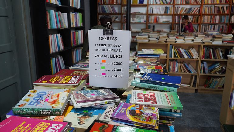 Este miércoles, la librería El Anticuario, ubicada en la calle Sarmiento 436, tenía eso y mucho más que decir. Su vidriera era la antesala de lo que sucedía al ingresar y recorrer sus estanterías y bibliotecas, todavía con muchos libros por ofrecer. "Remate de libros por cierre", el mensaje claro y contundente. Libros por $1.000, $2.000 y $5.000, identificados por etiqueta de color naranja, verde y fucsia. Desde revistas para hacer collage, hasta novelas.