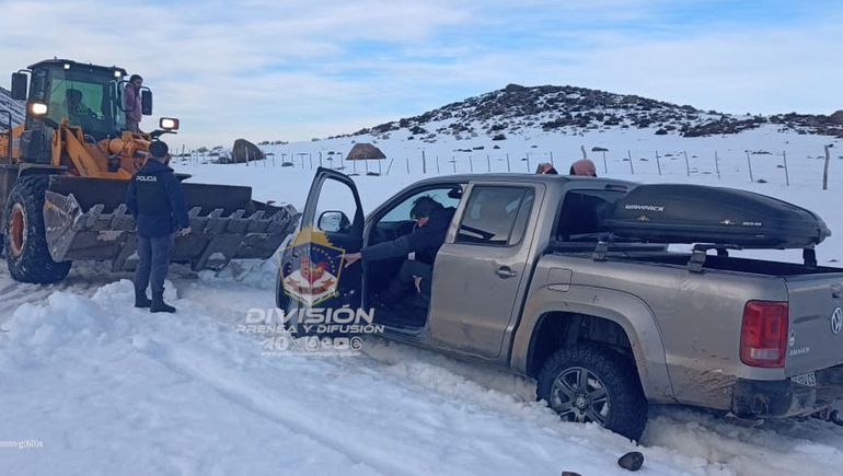 Montaron un operativo en conjunto con Vialidad Provincial y partieron a las 3 de la mañana en dirección a Las Lagunas de Epulafquen, a unos 45 de la localidad por la Ruta Provincial 45. “Se tuvo que ir limpiando el camino con la máquina de Vialidad Provincial, sacando la nieve que había tramos entre 40 y 50 cm de nieve. Se los pudo rescatar y a las 11 se arribó con ellos a la localidad”, agregó el comisario.