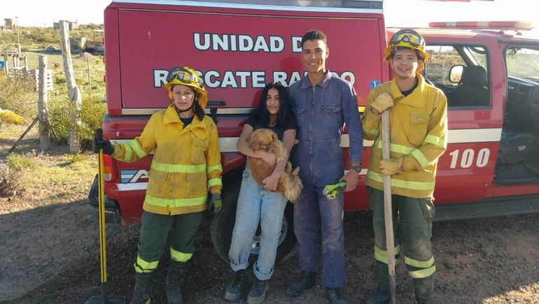 “El perrito se había metido en una especie de madriguera o conejera, seguramente persiguiendo algún cuis o conejo por esas cuevas o túneles. Lo encontramos un metro y medio bajo tierra”, relató el jefe de cuartel, Patricio Álvarez, a LMNeuquén.
