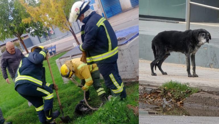 Gracias a la rápida acción de los vecinos y la labor de los bomberos, el perro pudo ser rescatado sin sufrir heridas graves.