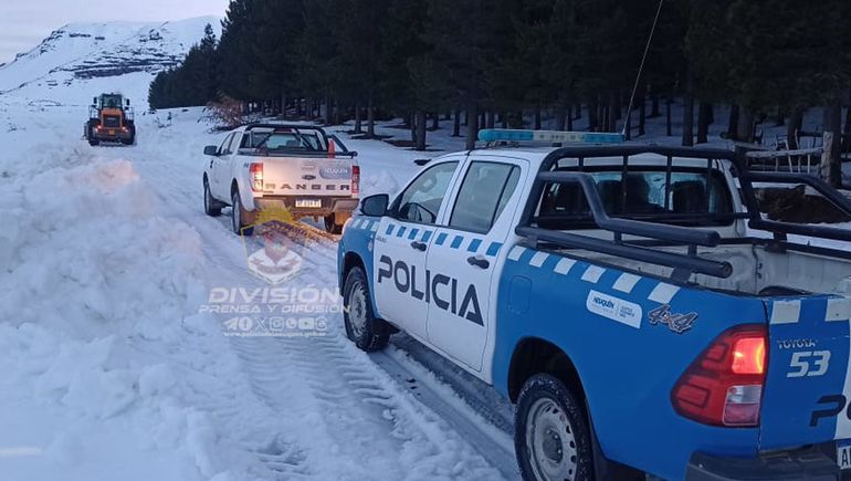 En conjunto con Vialidad Provincial partieron a las 3 de la mañana en dirección a Las Lagunas de Epulafquen, a unos 45 de la localidad, por la Ruta Provincial 45. “Se tuvo que ir limpiando el camino con la máquina de Vialidad Provincial, sacando la nieve que había tramos entre 40 y 50 cm de nieve. Se los pudo rescatar y a las 11 se arribó con ellos a la localidad”, agregó el comisario.