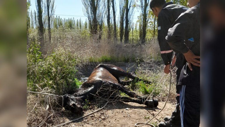 El hecho tuvo lugar a las 9.30 de la mañana del jueves a la altura de la calle 10, de la ex Ruta 234 de Vista Alegre Sur. El tomero del Consorcio de Riego fue quien solicitó la intervención al ver la lucha en vano del animal para poder salir del canal.