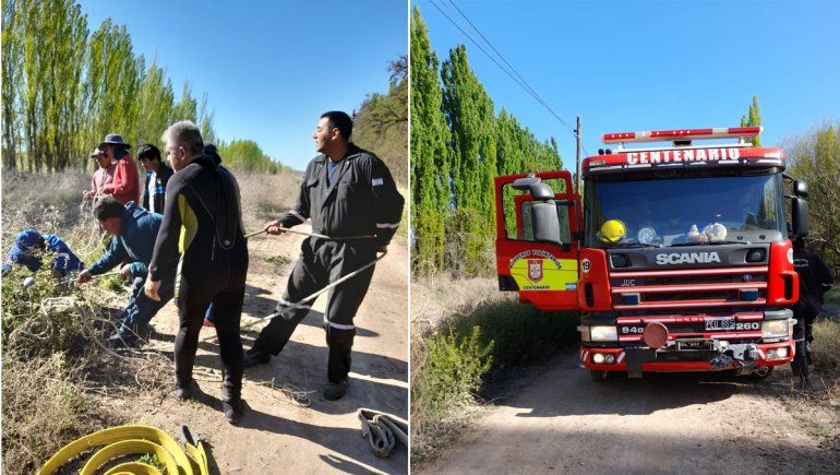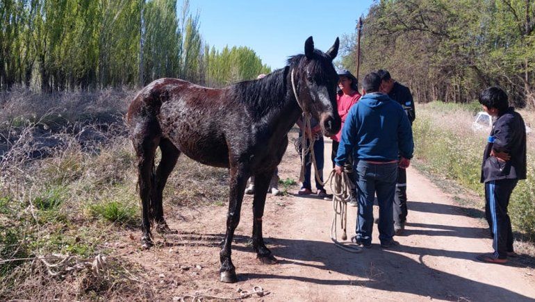 “Cuando llegamos nos encontramos con una yegua caída dentro del agua y la familia propietaria en el lugar, pero no lo podía rescatar. La tenían atada y la ayudamos a poder subir con cuerdas”, relató el jefe del Cuartel de Bomberos Voluntarios de Centenario, Patricio Álvarez, a LMNeuquén.