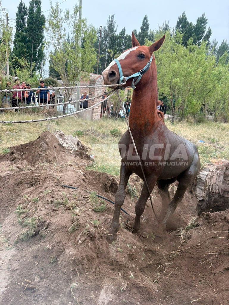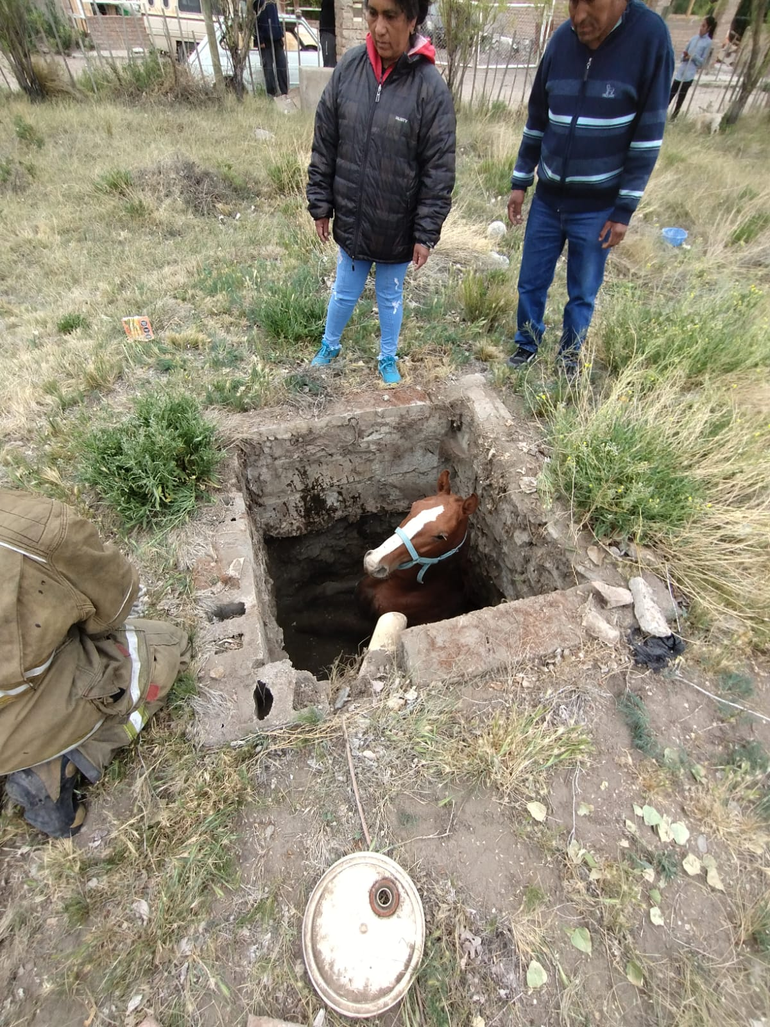 Este caso, el zaino, el caballo color marrón, es un animal de trabajo de una vecina que se había escapado y, no se sabe en qué circunstancias, se cayó en el pozo de un vecino.