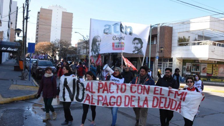 Desde las 10.30 las organizaciones sociales junto con Aten Capital, Aten Plottier y Ceramistas marcharon por la Avenida Argentina hasta terminar su movilización frente a Casa de Gobierno.