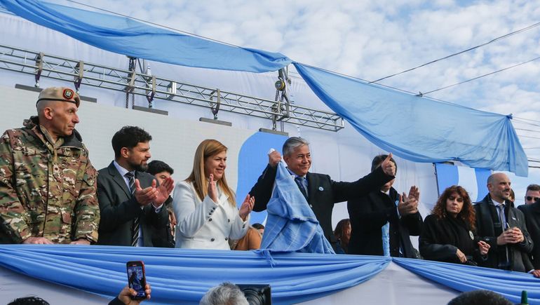 Desde el palco montado en el bajo de la ciudad, el gobernador recordó a los hombres que “lucharon durante años para poder concretar esa independencia”.