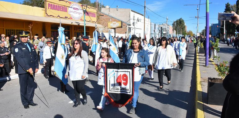 Figueroa presidió el acto por el 58 aniversario de Plaza Huincul junto al intendente de la localidad, Claudio Larraza y su par de Cutral Co, Ramón Rioseco, entre otras autoridades.
