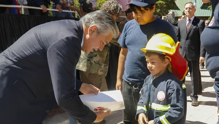 Acompañado por vecinos, autoridades y por el intendente Arturo de Gregorio, el mandatario destacó la presencia de un grupo de alumnos, en el acto. “Nos están acompañando, pese a que están de vacaciones”, dijo y agregó: “Estos alumnos hoy dejaron su casa, sus vacaciones, se pusieron su guardapolvo y vinieron con la bandera, que portan con mucho orgullo y satisfacción”.