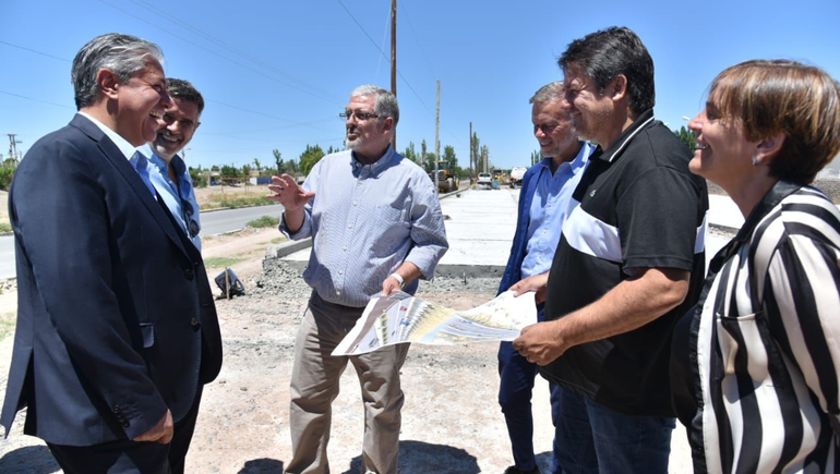 El gobernador Rolando Figueroa acompañó este lunes al intendente de Neuquén, Mariano Gaido, en la recorrida por la obra de entubamiento del canal Necochea y pavimentación de la avenida que lleva el mismo nombre.