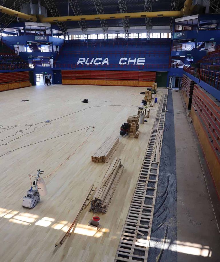 Uno de los puntos más destacados de la renovación fue la instalación de un nuevo piso multipropósito, realizado por Tecnopiso, la misma empresa -con sede en Santa Fe- que lo construyó hace 30 años. "Cuando les contamos el proyecto, dijeron ‘chicos, bajamos el costo para poder hacerlo nosotros’. Fue un gesto lindo", relató Bolan. El nuevo parquet, de madera de guatambú, está en su etapa final de pulido y barnizado, y listo para competencias de alto nivel.