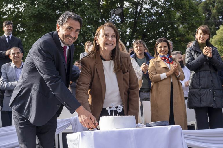 Tras el corte de la torta, realizado por la vicegobernadora Zulma Reina y el intendente Carlos Saloniti, se dio inicio al desfile cívico-militar. Durante la jornada, se repartieron entre los asistentes unos 1.200 muffins elaborados por personal de la Secretaría de Desarrollo Humano del municipio.