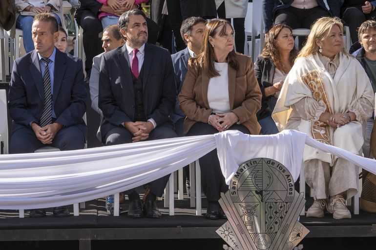 El acto central contó con la presencia de la vicepresidenta primera a cargo de la presidencia de la Legislatura del Neuquén, Zulma Reina, quien encabezó el palco oficial junto al intendente Carlos Saloniti. También participaron el ministro de Gobierno, Mujeres y Derechos Humanos de la provincia, Jorge Tobares, y la diputada nacional por Neuquén, Karina Moureira.