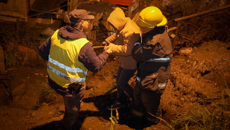 Después del deslave se montó un operativo con participación de Bomberos Voluntarios, Protección Civil, ICE Parque, Policía Provincial y Gendarmería. Durante toda la madrugada se monitoreó la situación mientras se ayudaba a la evacuación de las familias que habitan la zona que aparecía más comprometida.