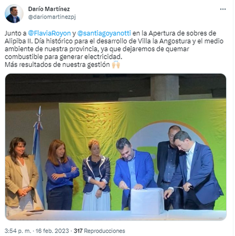 La primera apertura fue para la Licitación Pública N° 15/2022 para la Interconexión Eléctrica Alicurá – Dina Huapi – Bariloche – Villa La Angostura en la cual se presentaron 7 ofertas.