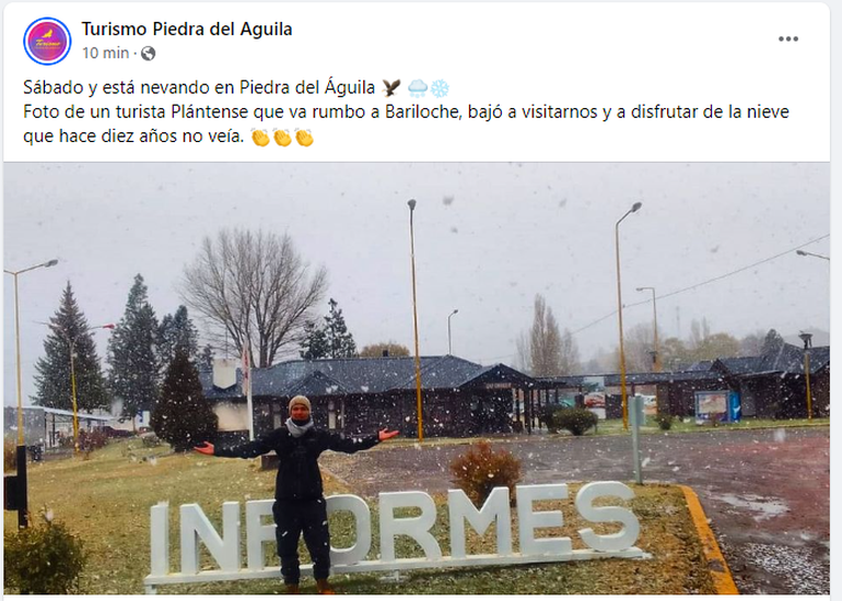 En sus posteos en las redes sociales, la estación meteorológica de Cipolletti se animó a anunciar que aunque se trataría de "lloviznas o lluvia débil", no se podría descartar algunas neviscas.
