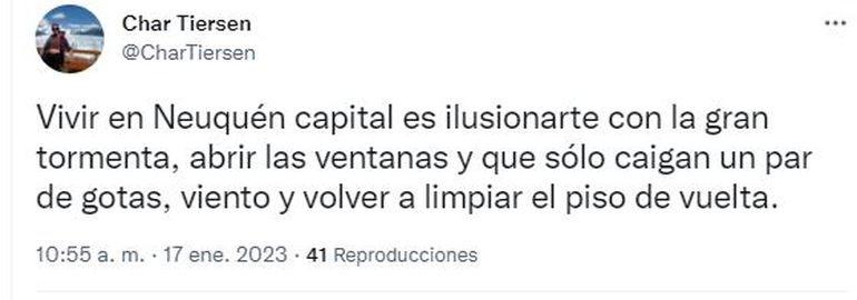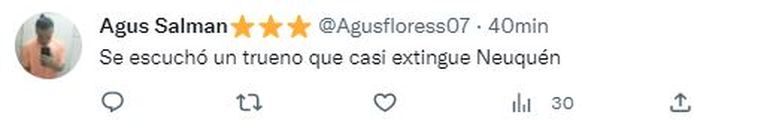 Este martes, pasadas las 21:30, una fuerte tormenta eléctrica se desataba en Neuquén capital y alrededores. Aunque estaba pronosticada previamente la alerta amarilla por intensas precipitaciones, muchos creyeron que -como ocurrió en la víspera- también el fenómeno climatico pasaría de largo esta noche.